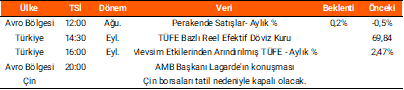 Cuma günü yurt içinde açıklanan verilere göre, eylül ayında Tüketici Fiyat Endeksi (TÜFE) piyasa beklentilerinin (%2,5) üstünde, aylık bazda %3,23 yükselirken, bir önceki yılın aynı ayına göre %33,29 oldu. Küresel tarafta Almanya’da hizmet PMI, beklentilerin altında kalarak 51,5 seviyesinde açıklanırken, Avro Bölgesi’nde de benzer şekilde veri 51,3 ile tahminlerin hafif altında gerçekleşti. ABD’de ise ISM hizmet PMI verisi 50,0 seviyesinde gelerek beklentilerin oldukça gerisinde kaldı ve hizmet sektöründeki zayıflamaya işaret etti. Bugün yurt içinde mevsim etkilerinden arındırılmış TÜFE ve TCMB aylık fiyat gelişmeleri raporu, küresel tarafta Avro Bölgesi perakende satış verileri ile Avrupa Merkez Bankası (ECB) Başkanı Christine Lagarde’ın yapacağı konuşma piyasaların odağında olacak.