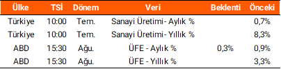 Dün yurt içi ve yurt dışı piyasalarda veri akışı oldukça sakindi. Bugün ise küresel piyasalarda, ABD’de ağustos ÜFE verileri takip edilirken, yurt içinde sanayi üretimi verileri izlenecek.