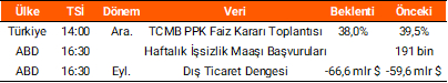 TÜİK tarafından açıklanan sanayi üretim endeksi, ekim ayında yıllık bazda %2,2 artarken, aylık bazda %0,8 azalış gösterdi. Dün Avrupa Merkez Bankası Başkanı Lagarde gerçekleştirdiği konuşmada, ekonominin beklenmedik direnci nedeniyle aralık ayı büyüme tahminlerinin yükseltilebileceğini ifade etti. Dün Fed’in faiz kararı beklentilerle uyumlu olarak 25 bp indirimle %3,50-3,75 aralığına çekildi. Fed’in ekonomik göstergelere ilişkin beklentileri ise şu şekilde; 2025 için kişisel tüketim harcamaları öngörüsü %3’e, PCE tahmini %2,9’a indi. Büyüme tahmini 2025 için %1,7’ye 2026 için %2,3’e güncellendi. İşsizlik tahminleri ise 2025 ve 2026 için sırasıyla %4,5 ve %4,4 seviyelerinde sabit kaldı. Kararın ardından Başkan Powell yaptığı açıklamada, hanehalkı harcamaları azalırken, işsizlik oranının yükseldiğini ve enflasyonun %2 olan hedefin üzerinde kalmaya devam ettiğini belirtti. Bugünün veri takviminde, TCMB’nin PPK faiz kararı toplantısı öne çıkıyor. Piyasa beklentileri politika faizinin 150 bp indirileceği yönünde şekilleniyor. ABD’de ise haftalık işsizlik maaşı başvuruları ve dış ticaret dengesi verileri açıklanacak.