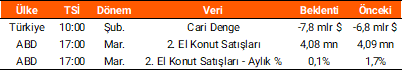 Cuma günü, yurt içinde TÜİK tarafından açıklanan verilere göre sanayi üretimi şubat ayında aylık bazda %2,6 ve yıllık bazda ise %2,2 artış gösterdi. Ayrıca Fitch, takvim dışı bir kararla Türkiye’nin "BB-" seviyesindeki kredi notunu teyit ederken, "Pozitif" olan görünümü "Stabil"e çektiğini açıkladı. Küresel tarafta ABD’de mart ayı enflasyon verileri takip edildi. Buna göre savaşın etkili olduğu dönemde TÜFE aylık %0,9 (önceki: %0,3) olarak gerçekleşirken, yıllık %3,4 (önceki: %2,4) ile beklentilerin hafif altında açıklandı. Çekirdek TÜFE ise aylık %0,2 ve yıllık ise %2,6 ile beklentilerin hafif altında arttı. Ayrıca, Almanya’da TÜFE martta aylık %1,1 ve yıllık %2,7 ile beklentilere paralel açıklandı.