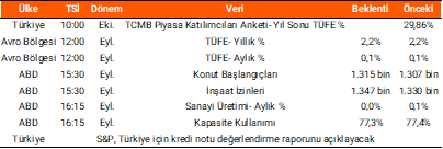 Yurtiçinde TÜİK tarafından açıklanan konut satışları verisi ön plandaydı. Eylül ayına ilişkin veriler yıllık %6,9 artış göstererek yılın en yüksek aylık satışını gerçekleştirdi. ABD’de hükümetin kapalılığına ilişkin bir gelişme olmaması dolayısıyla açıklanması beklenen veriler ertelenmeye devam etti. Diğer taraftan kıymetli madenler piyasasında yaşanan rekor denemeleri yakından takip ediliyor. Ons altın üst üste artış gösterdiği 5. Günü geride bırakırken, 4.298 $’a ulaşarak yeni en yüksek seviyesine ulaşmış oldu. Ons gümüş ise %1,5’i aşan artış göstererek 54,16 $ seviyesine yükseldi. Güvenli liman arayışının devam ettiği gözlenirken, bu sabah rekorlar tazelenmeye devam ediyor. Bugün TCMB tarafından piyasa katılımcıları anketi yayımlanacak. Ayrıca S&P Türkiye için kredi notu değerlendirme raporu yayımlayacak. S&P en son değerlendirmesinde Türkiye’nin uzun vadeli kredi notunu “BB-“ olarak korurken, not görünümünü de “Durağan” olarak teyit etmişti. Yurt dışında ise Avro Bölgesi’nin eylül ayı enflasyon gerçekleşmeleri açıklanacak. ABD’de ise verilerin ertelenmeye devam etmesi bekleniyor.