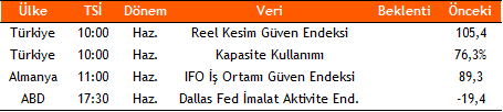 Cuma günü genelinde hem Avrupa hem de ABD’de imalat ve hizmet PMI verileri takip edildi. Almanya, Fransa ve Avro Bölgesi PMI verileri, hem imalat hem de hizmet PMI tarafında beklentilerin altında kaldı. ABD’de ise Avrupa tarafının tersine güçlü malat ve hizmet PMI verileri ön plana çıktı. Veri sonrasında ons altında 2.370 $ seviyelerinden 2.320 $ üzerine kadar gevşeme gözlendi. Parite haftayı 1,07 altından kapatırken, petrol fiyatları ise 85 $ altında seyrediyor. Bugün içeride reel kesim güveni ve kapasite kullanımı açıklanacak, dışarıda ise önemli bir veri akışı görünmüyor.
