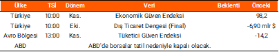 Dün TCMB Başkanı Fatih Karahan’ın açıklamaları yakından takip edildi. Başkan Karahan konuşmasında, hissedilen enflasyonun gıda ve kira kaynaklı olduğunu belirtirken, kira artışlarının yavaşladığını ve konut arzındaki artışın enflasyondaki düşüşü destekleyeceğini ifade etti. Ayrıca politika faizi ile piyasa faizlerinin arasında her zaman doğru orantı olmadığını vurgulayan Karahan, bu süreçte enflasyon beklentilerinin belirleyici olduğunu belirtti. Diğer taraftan ABD’de haftalık işsizlik maaşı başvuruları 226 bin olan beklentilerin altında 216 bin olarak açıklandı. Dayanıklı mal siparişleri ise eylülde %0,5 artarak 313,7 mlr $’a yükseldi. Ayrıca ABD’de Fed’in Bej Kitabı yayımlandı. Raporda, ekonomik faaliyetlerde genel olarak çok az değişiklik olduğu ancak buna karşın tüketici harcamalarında azalma meydana geldiği belirtildi. Bugün yurt içinde tüketici güven endeksi ve dış ticaret dengesi verileri açıklanacak. Avro Bölgesi’nde tüketici güven endeksi takip edilecek. Son olarak ABD borsaları bugün tatil nedeniyle kapalı olacak.